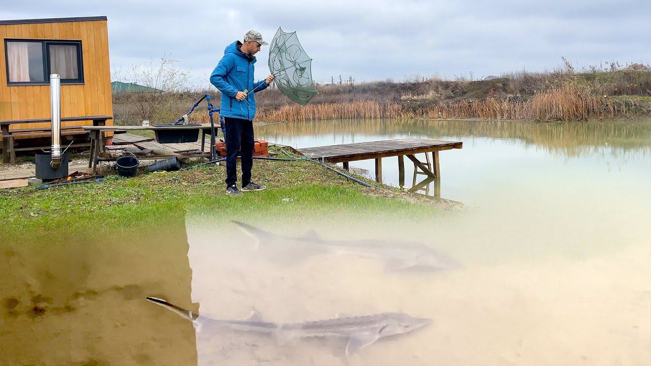 ОХОТИЛСЯ на ФОРЕЛЬ, а поймал ОСЕТРА в кадр в своём пруду. Баня сломалась. Выращивание осетра