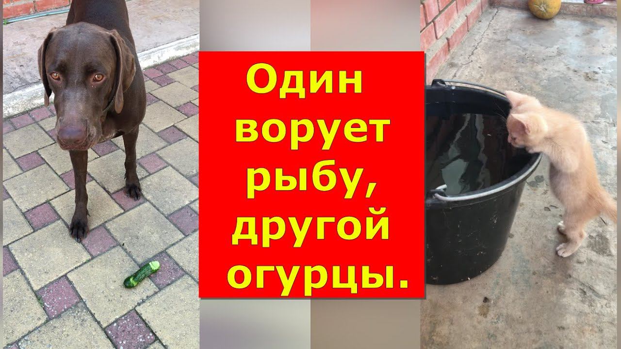 Один ворует рыбу, другой огурцы.