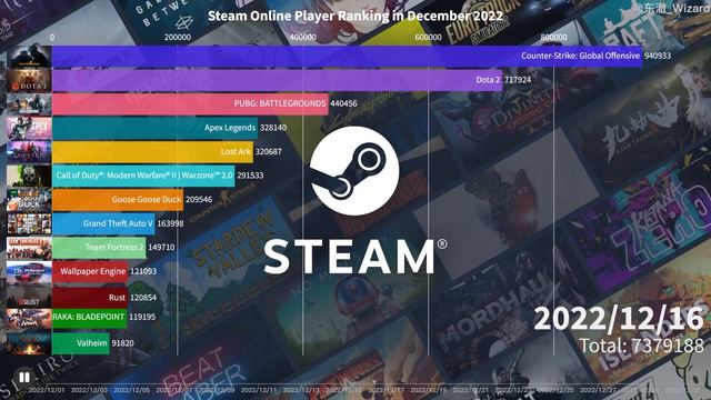 Steam Online Player Ranking in December 2022