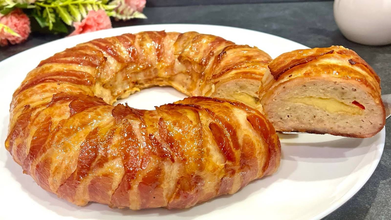 Горячее блюдо на ПАСХУ 2025!! Мясной рулет с сыром и беконом!