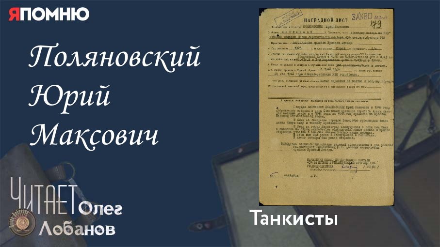 Поляновский Юрий Максович. Проект "Я помню" Артема Драбкина. Танкисты.