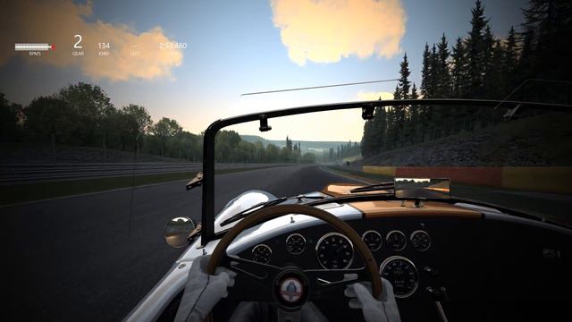Trying out the Shelby Cobra 427SC at spa with the Post Processing Filter set to Vintage at Sunset Assetto Corsa - http://store.steampowered.com/app/244210/