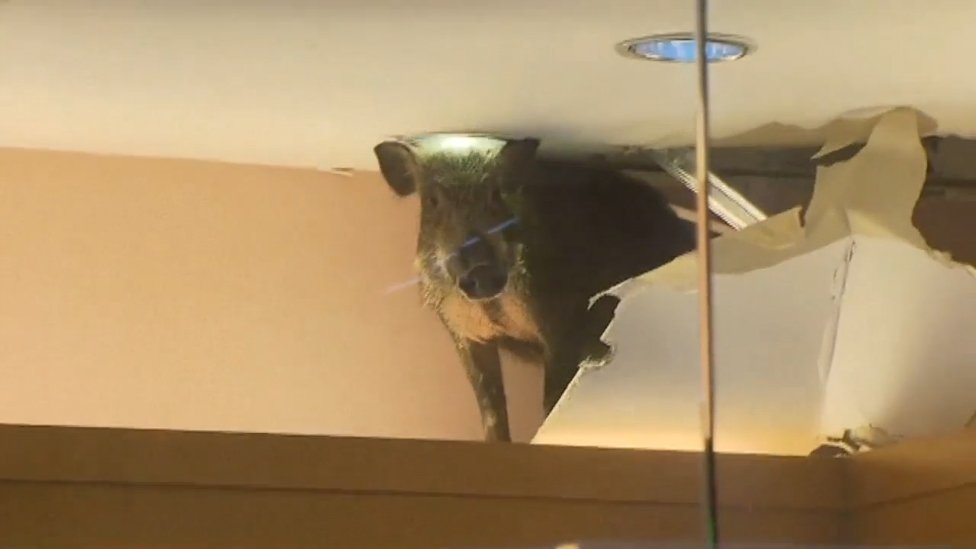 В один из торговых центров Гонконга ввалился дикий кабан!