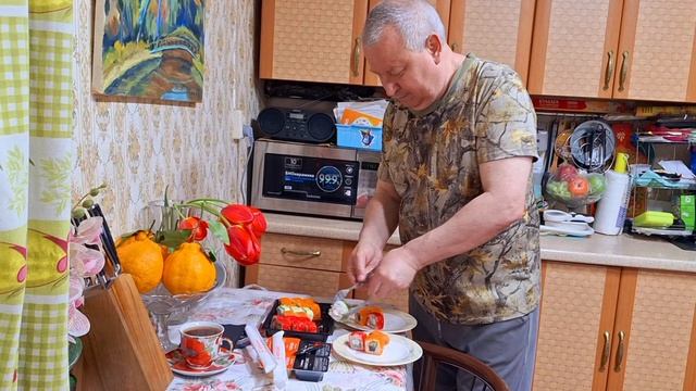 Небольшой перекус роллами.Подарок от фирмы за победу в конкурсе-16.05.2025 год.