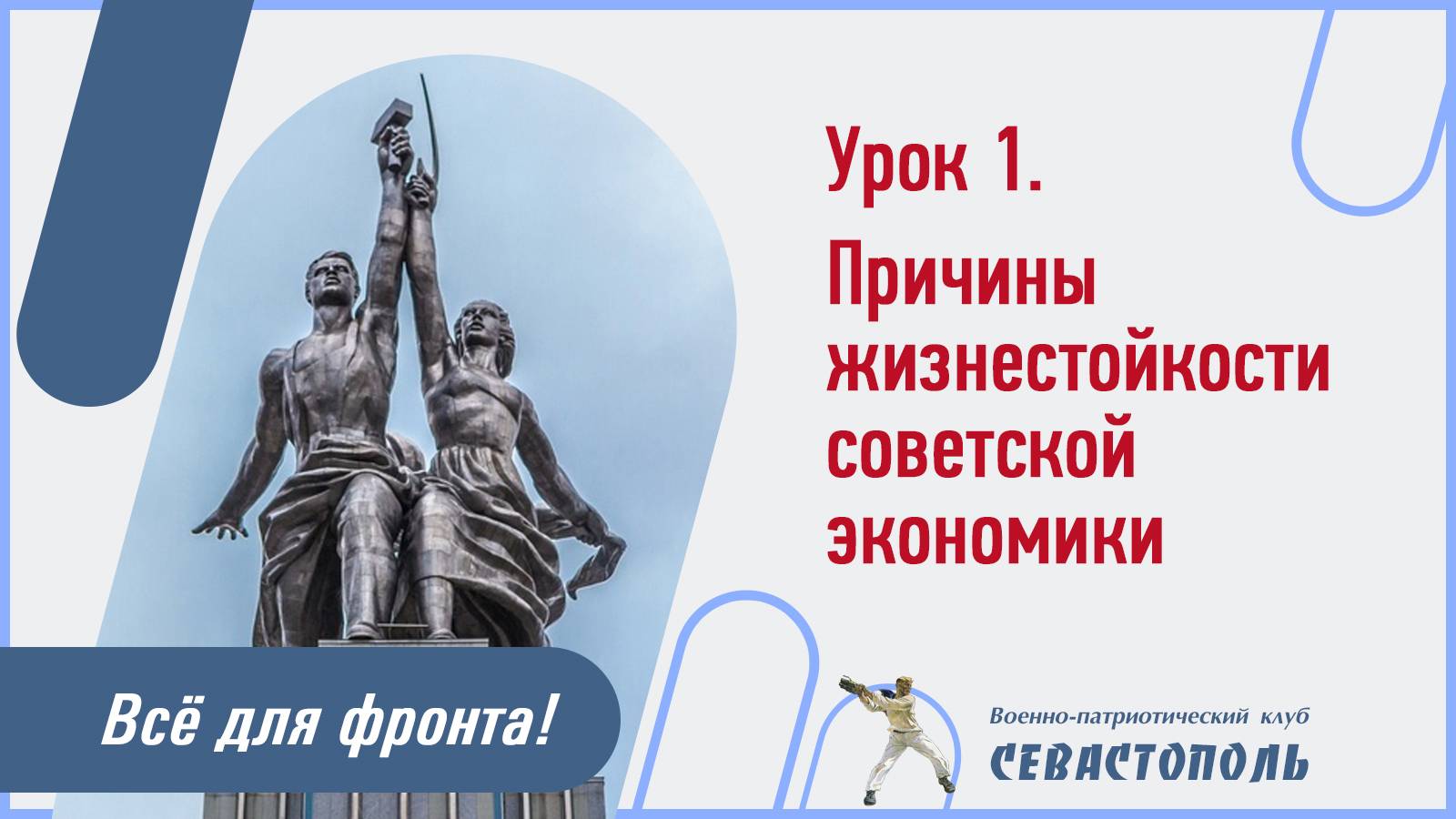 Военно-патриотический клуб "Севастополь" приглашает детско-юношеские и молодежные отряды этой осенью принять участие в программе "Всё для фронта!", которая посвящена вкладу трудящихся СССР в Великую Победу и традиционно будет включать цикл видеоуроков и итоговый Интернет-Чемпионат. Урок №1. "Причины жизнестойкости советской экономики" Урок ведет Васюков Петр Павлович, кандидат исторических наук, доцент, полковник в отставке, г.Москва