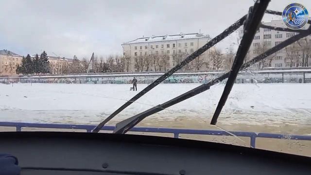 Сотрудники МЧС России перевозят жителей о.Кего через затопленные участки ледовой переправы