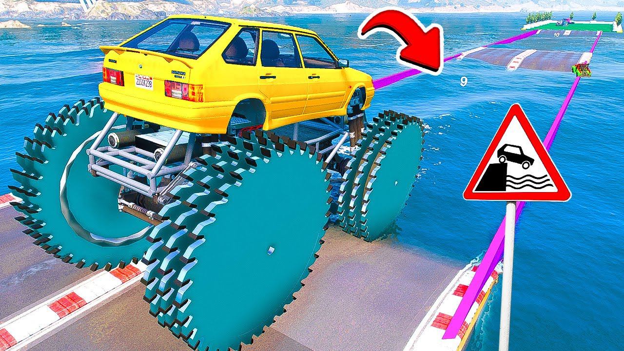 СМОЖЕТ ЛИ ГИГАНТСКИЙ ВАЗ 2114 С ПИЛАМИ ПРОЕХАТЬ ГЛУБОКУЮ ЯМУ С ВОДОЙ В ГТА 5 МОДЫ ЭКСПЕРИМЕНТЫ GTA 5