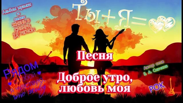 *Песня* Доброе утро, любовь моя (Куплет 1) Доброе утро, любовь моя, Которая мне судьбой и богом дана. За окном на улице солнце встаёт, И сердце моё от счастья поёт. (Припев) Я хочу быть с тобой, обнимать тебя, Любить тебя вечно, ты — моя судьба. Спасибо судьбе за тебя, дорогая, Ты за спиной мужа, как за каменной стеной. (Куплет 2) Спи, моя любовь, спокойно, Всё ещё успеется в нашей жизни. Я буду тебя беречь и хранить, И от всех бед тебя ограждать. (Припев) Я хочу быть с тобой, обнимать тебя, Любить тебя вечно, ты — моя судьба. Спасибо судьбе за тебя, дорогая, Ты за спиной мужа, как за каменной стеной. (Бридж) Я буду тебя любить так, как могу, Готов шагать с тобой по жизни хоть куда. Переносить все тяготы нашей жизни, Главное, чтобы не потухли огоньки любви. (Припев) Я хочу быть с тобой, обнимать тебя, Любить тебя вечно, ты — моя судьба. Спасибо судьбе за тебя, дорогая, Ты за спиной мужа, как за каменной стеной. (Аутро) Я тебя люблю, моя любовь, навеки, Ты — моя сладкая конфетка с секретом внутри. Буду любить тебя столько, Сколько есть в моём теле сил. Автор слов Е. А. Скачков Создано 08,05,2025 года Телеграмм https://t.me/LIFE_IN_SIBERIA_24_REGION RUTUBE https://rutube.ru/channel/34524998/ Дзен https://dzen.ru/life_in_siberia_24_region?share_to=link YouTube www.youtube.com/@LIFE_IN_SIBERIA_24_REGION Одноклассники https://ok.ru/profile/588851993420 VK https://vk.com/id874485256 Сообщество в VK ‘' ЖИЗНЬ В СИБИРИ 24 РЕГИОН ’’ https://vk.com/club228899689 Друзья, если хотите сотрудничать с нами или поддержать канал, переходите по данным, которые внизу. Для сотрудничества: potapenko2013-1983@mail.ru. Для поддержки канала: Тинькофф 2200701068636635. Телеграмм: https://t.me/LIFE_IN_SIBERIA_24_REGION. НЕ ЗАБЫВАЕМ ПОДПИСЫВАТЬСЯ НА НАШ КАНАЛ !!! Телеграмм https://t.me/LIFE_IN_SIBERIA_24_REGION RUTUBE https://rutube.ru/channel/34524998/ Дзен https://dzen.ru/life_in_siberia_24_region?share_to=link YouTube www.youtube.com/@LIFE_IN_SIBERIA_24_REGION Одноклассники https://ok.ru/profile/588851993420 VK https://vk.com/id874485256 Сообщество в VK ‘' ЖИЗНЬ В СИБИРИ 24 РЕГИОН ’’ https://vk.com/club228899689 Друзья, если хотите сотрудничать с нами или поддержать канал, переходите по данным, которые внизу. Для сотрудничества: potapenko2013-1983@mail.ru. Для поддержки канала: Тинькофф 2200701068636635. Телеграмм: https://t.me/LIFE_IN_SIBERIA_24_REGION. НЕ ЗАБЫВАЕМ ПОДПИСЫВАТЬСЯ НА НАШ КАНАЛ !!!