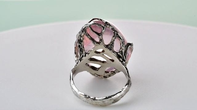 На видео представлено кольцо с розовым кварцем в серебре