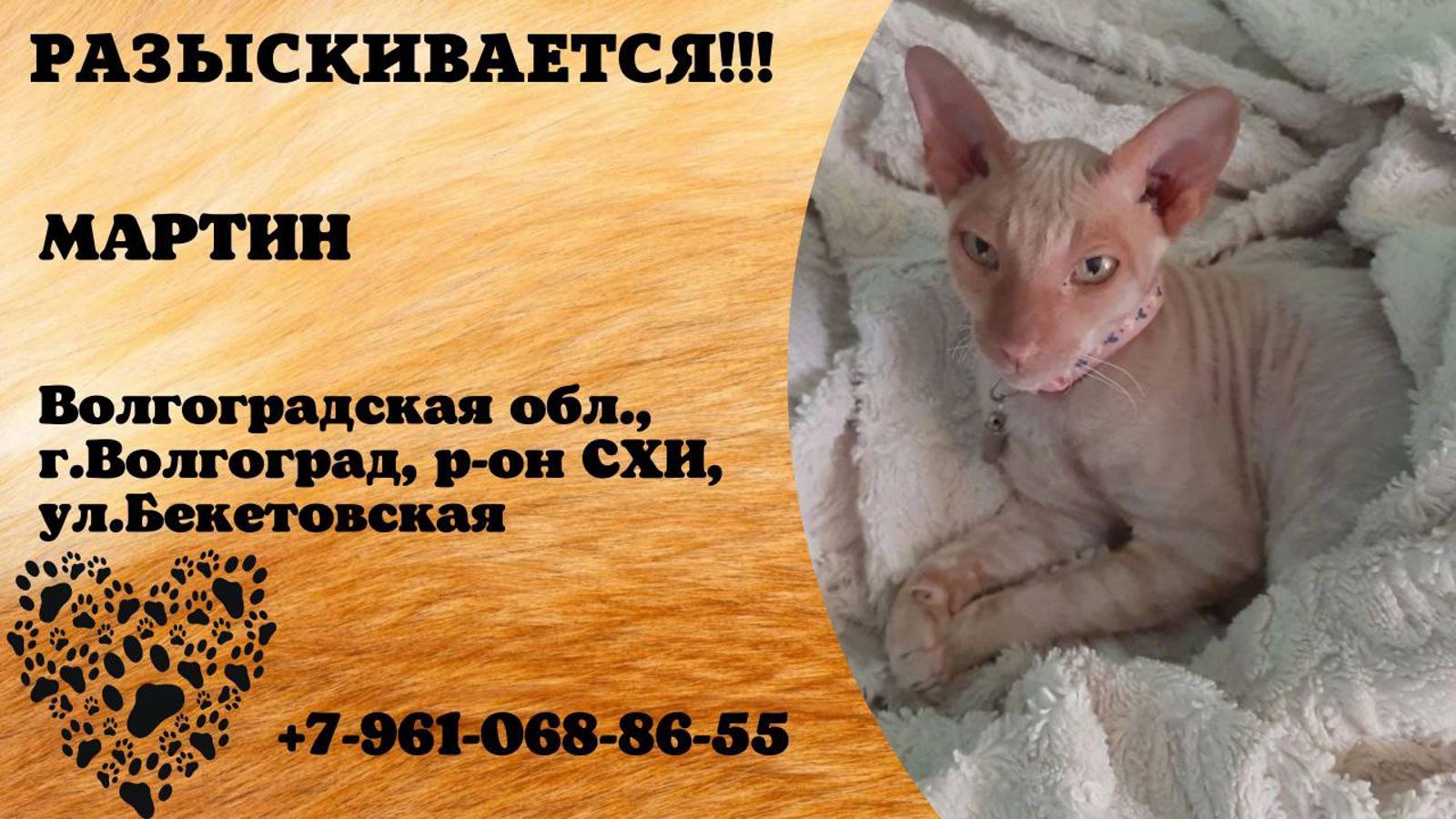 Пропал кот! МАРТИН. Волгоградская обл,г.Волгоград