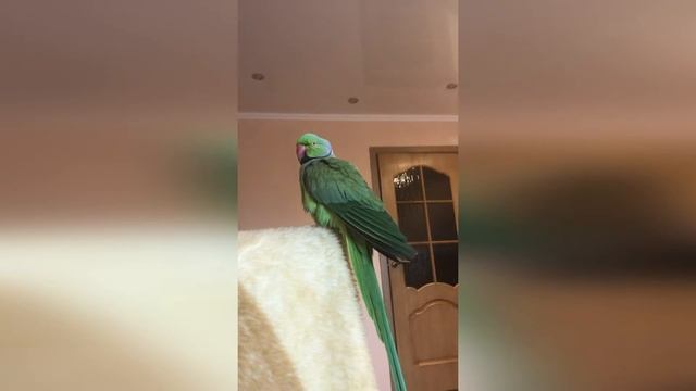 Ожереловый попугай сушит перья после купания Necklace parrot dries feathers after bathing