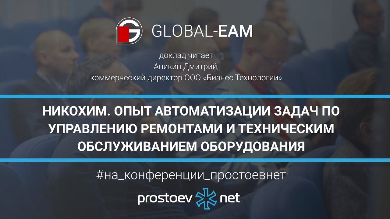 http://www.prostoev.net/ ЮБИЛЕЙНАЯ X конференция PROSTOEV.NET «Актуальные вопросы, методологии и опыт проектов управления процессами ТОиР» октябрь 2015 г. _ Мы информационно-образовательный проект по вопросам организации управления процессами поддержания надежности, проведения технического обслуживания и ремонтов технологических систем и оборудования. Подписывайтесь на наш YouTube канал https://www.youtube.com/user/prostoevnet _ Тема сегодняшнего видео «GLOBAL-EAM. НИКОХИМ. Опыт автоматизации задач по управлению ремонтами и техническим обслуживанием оборудования. ТОиР. RCM». 00:43 «GLOBAL-EAM. НИКОХИМ. Опыт автоматизации задач по управлению ремонтами и техническим обслуживанием оборудования». Доклад читает Аникин Дмитрий, коммерческий директор ООО «Бизнес Технологии». 01:45 Группа компаний «Никохим». О клиенте. Структура химического холдинга. 02:35 Структура ремонтной службы. Ремонтная служба Никохима. Специализированные цеха по ремонту. 03:23 Постановка целей и задач. Основные задачи, поставленные финансистами. Мнение главных специалистов на начало проекта. 05:00 Статистика проекта. 06:43 Пользователи системы. Сведения о пользователях системы. Состав пользователей Global-EAM 07:47 Функции персонала в системе. Функции механиков, электриков цехов. Основные задачи. 12:34 Годовое планирование. Годовое ресурсное планирование. Виды планов. 13:32 Этапы годового планирования ресурсов и затрат. 14:02 Этап 1. Получение общего списка работ. 14:54 Этап 2. Расчет ресурсов и стоимости работ. 16:35 Этап 3. Формирование титульных планов. 18:46 Этап 4. Балансировка планов. 20:34 Скользящее планирование: оперативные корректировки. 21:55 Управление бизнес-процессами. 22:42 Управление взаимодействием. 23:29 Маршруты обработки документов. Средства WorkFlow. 25:03 Подготовка работы к выполнению. 26:07 Выполнение работы. 27:28 Результаты проекта. Подведение итогов. 30:00 Ответы на вопросы аудитории. 35:31 В следующем видео: GLOBAL-EAM. Ависма. Опыт автоматизации задач по управлению ремонтами и техническим обслуживанием оборудования. _ Мы в соцсетях: Fb https://www.facebook.com/www.prostoev.NET/ VK https://vk.com/prostoev__net Linkedin https://www.linkedin.com/groups/8464641 Одноклассники https://ok.ru/group/58505577300000 Инстаграм https://www.instagram.com/prostoevnet/ _ http://www.prostoev.net - Информационно-образовательный портал Управления ТОиР #на_конференции_простоевнет #prostoevnet #простоевнет #техническое_обслуживание #ремонт #тоир #rcm #RCM #управление_надежностью #надежность_оборудования