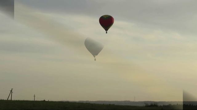 Октябрь, на поле близ дачного поселка, летят воздушные шары, они у нас часто летают...