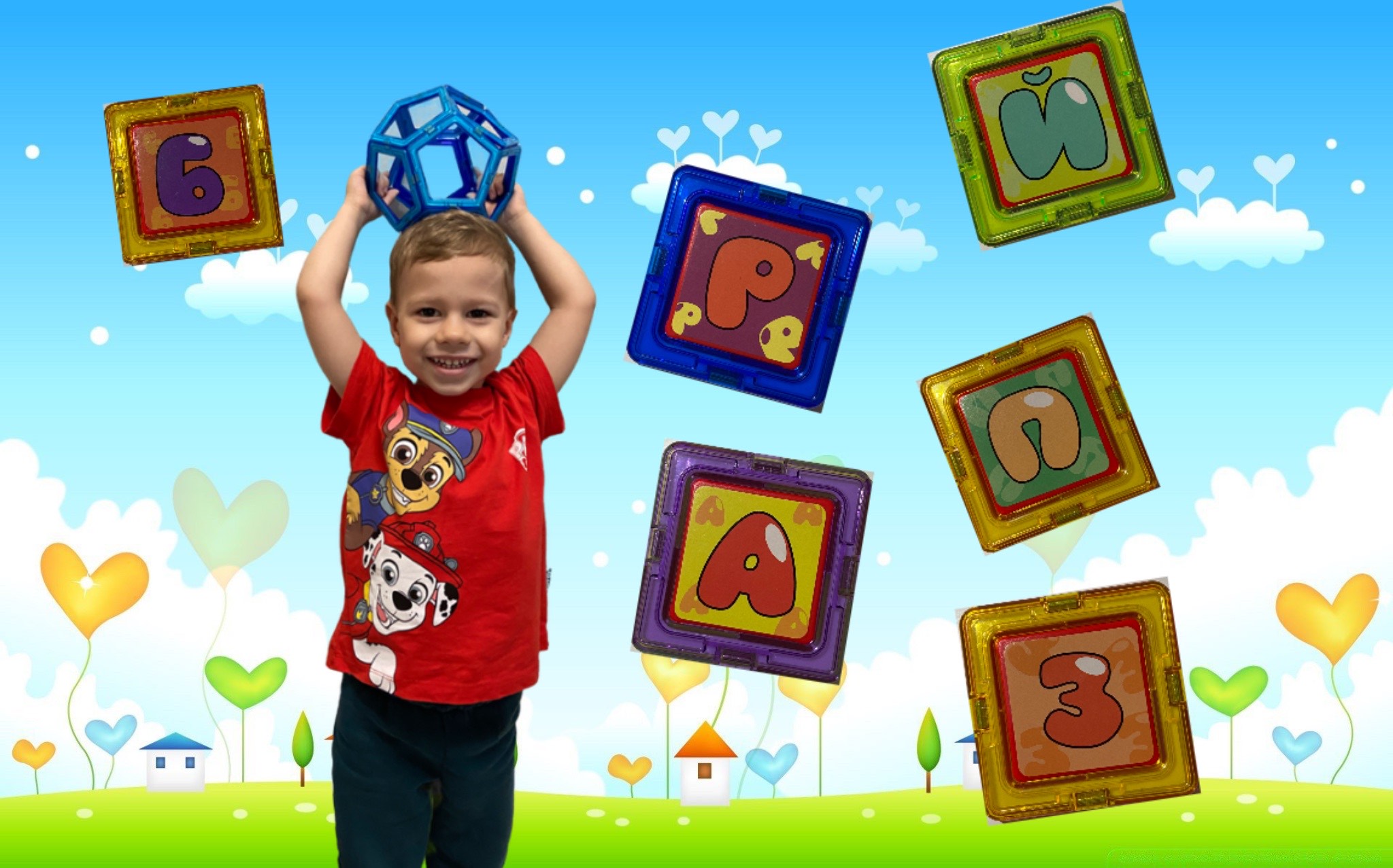 Ярик собирает магнитный конструктор и изучает буквы. Соберём шар, гараж и дом! Видео для детей.