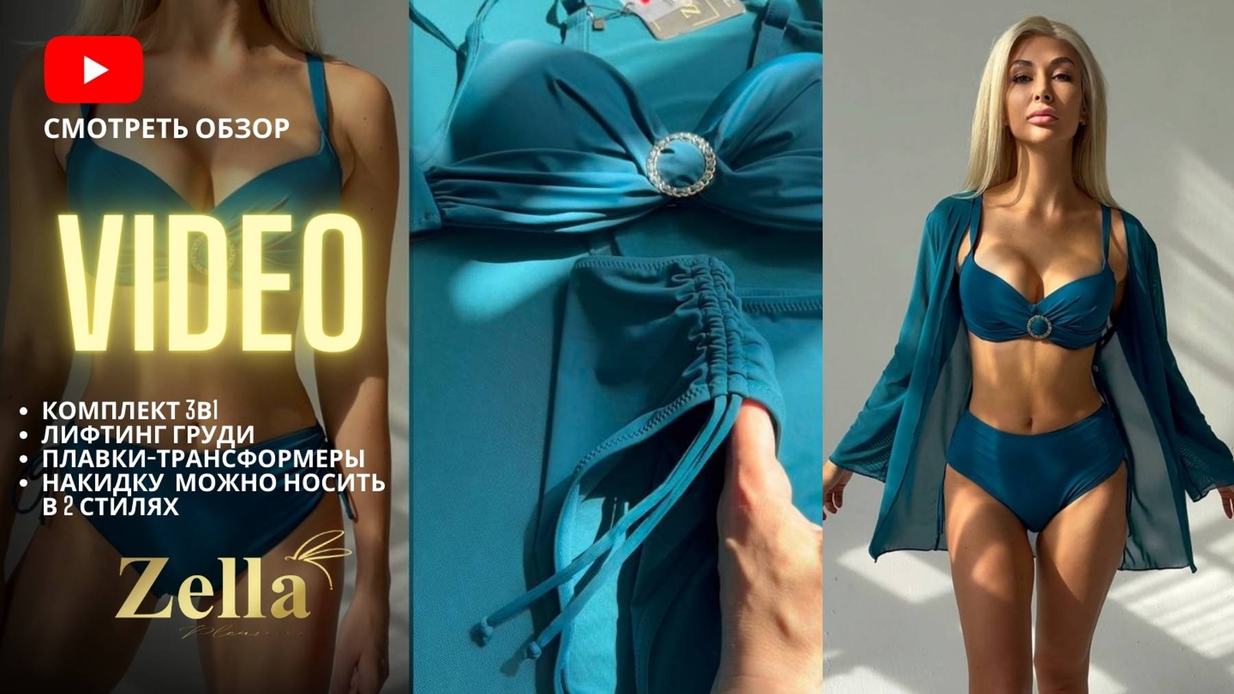 Раздельный купальник больших размеров. Пляжный комплект 3-в-1 с накидкой. Видеообзор с Wildberries.
