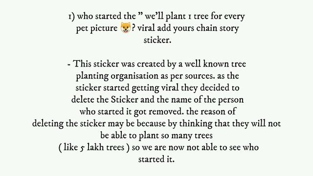 Who started the Add yours " we'll plant 1 tree for every pet picture & who will plant the trees ? we'll plant 1 tree for every pet picture on Instagram Story | chain story | Viral add yours sticker Link. we'll plant 1 tree for every pet picture Instagram Story | get all the trending add yours sticker links. I have been getting a lot ot DM's on this, please watch the video till the end and listen to the instructions properly. 📍MORE DETAILS WITH THE INSTAGRAM ACCOUNT LINK of Who started the Add yours " we'll plant 1 tree for every pet picture & who will plant the trees ? - https://youtu.be/PoWzx4GkHuY ✅ WHY YOU SHOULD NOT DELETE YOUR OWN ADD YOURS STICKER? Link - https://youtu.be/jyUijpGfrlM ➡️ TOPICS COVERED How to get all trending Add Yours sticker on Instagram Add yours chain sticker Add yours feature Instagram ✅ INSTAGRAM ACCOUNT - @astrida_03 ➡️ ASLO WATCH : 📍" ADD YOURS " Sticker is now available worldwide ! ( Instagram new update ) Here is how to use it 😍 Link : https://youtu.be/sqIYdsH0h7M 📍How to create your own " ADD YOURS " Sticker and who are eligible to create it ? video in detail - Link : https://youtu.be/q7yI8oNytEI 📍How to get all the " ADD YOURS " stickers story chain on Instagram ? Link : https://youtu.be/xTimem_1weY 📍Not able to click on " ADD YOURS " sticker what to do? Answering your questions here ⤵️ Link : https://youtu.be/LafL4Km3TwY 📍 Everything you need to know about new instagram story feature update " ADD YOURS " Link : https://youtu.be/iUE2a0aKVeg 📍How to find new add yours stickers and upload your Photos ? Link : https://youtu.be/xZVfRCHgjGQ 📍Why your not able to click on ADD YOURS chain story ? Why your not able to Create your own Stricker? Link : https://youtu.be/9rRk6mo5wkg ✅ You can also find the Stricker link in my Instagram account ( astrida_03 ) Story HIGHLIGHTS, if you don't find it in the story. 🔔 SUBSCRIBE to my channel for more Trending photo and video editing tutorials and information like this : @AstridaMascarenhas ❤️ 📸 PHOTOS USED Photos used in the video are from pinterest and Instagram and are not mine. they belong to their rightful owners. they are taken for Illustration purpose only. credits to the rightful owner. #apicturefrom #petpic #1tree #planttrees #trendingnow #instagramstatus #instagram #newstorychain #newaddyourlink #addyours #chainstory #viral #viralstory #viralsticker ©️ Astrida Mascarenhas 2021