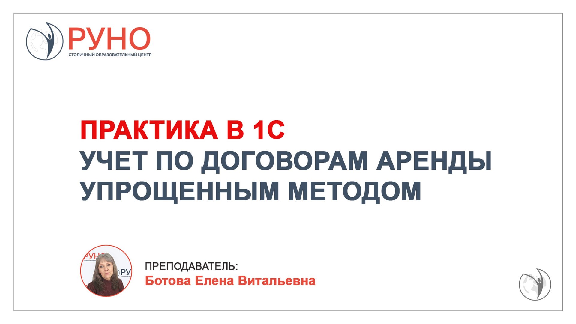 Практика в 1С. Учет по договорам аренды упрощенным методом | Елена Ботова. РУНО
