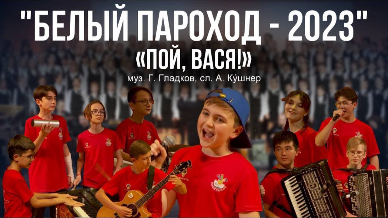 «Пой, Вася!» Музыка Григория Гладкова, слова Александра Кушнера Исполняют Рамзан Нуртдинов (г.Уфа), Лиза Кемоклидзе (г.Санкт-Петербург), Ваня Фесенко (с. Бирюковка, Астраханская обл.), Самир Мамедов (с.Кош-агач, республика Алтай), Миша Москалик (г.Евпатория, республика Крым), Валера Иноземцев (г.Знаменск, Астраханская обл.), Болат Ульба́шев (г.Нальчик), Лёня Шиловский (г.Новосибирск), Алим Карданов (г.Нальчик, Кабардино-Балкарская республика), Миша Гергиев (г.Санкт-Петербург). 30 августа 2023 года в Концертом зале им. Чайковского (Москва) состоялся концерт «Здравствуй, сказка!» 18 Всероссийского детского музыкального благотворительного фестиваля «Белый Пароход». Официальный сайт фонда https://beliy-parohod.ru/?ysclid=lsem3nrlsk311167279 Сайт вокальной студии Белый Пароход https://vocalstudio-bp.ru/?ysclid=lsem6n8ec5335616013 Мы в социальных сетях: Телеграм-канал: https://t.me/beliy_parohod_fond Группа в ВК: https://vk.com/beliy_parohod Инстаграм https://www.instagram.com/beliy_parohod_fond