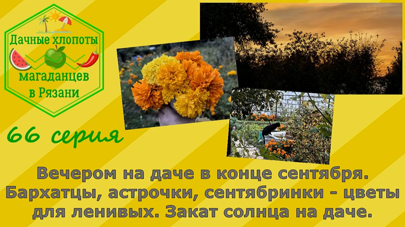Вечер на даче в 21 сентября 2025. Бархатцы, астрочки, сентябринки - цветы для ленивых и для меня.Закат солнца. 66 серия дачных хлопот. 65 серия наших дачных историй. НЕ последняя в этом сезоне, как оказалось))). Оказалось, я еще не смонтировала сентябрьские видео о даче, когда мы туда залетали ненадолго, урожай почти весь собран, и жизнь наша кипела, как и в октябре, и в ноябре, и сейчас, в декабре. Покой нам только снится. Поэтому монтирую эти дачные видео только в декабре и будто опять на даче. А за окном снег, а там тепло, бабочки, шмели, цветы, еще много зелени и яблоки. Если честно, скучаю по даче. Вроде не особо какая то крутая, но она мне много дала в этом году. 1. Это спорт и бесплатный фитнес - я за лето научилась приседать, буквально стала баЛеРиной и еще чуть-чуть и сяду на шпагат))) стала легко нагибаться и застегивать и завязывать кроссовки, а в поликлинике могу без проблем надеть и снять бахилы, чего не могла делать в прошлом году. 2. Дача дала немного урожая и заготовок в морозилку на зиму - это кинза, петрушка, укроп, морковка и совсем капелька свеклы. Остальное не получилось)) 3. Мы все лето ели свои ягоды и яблоки, а так же поставила вино из черноплодной рябины. Вышло неплохое, сама в шоке. И я его еще не выпила все, только бутылочку с магаданскими друзьями, которые приходили в гости. На следующий год буду экспериментировать и с другими ягодами и фруктами, если будет урожай. 4. И самое главное, что я лично получила от дачи - непередаваемое море удовольствия от свежего воздуха, природы, и самой мысли что у тебя твоя дача! Не со свекрами и свекровью, не родительская, а своя. Правда, она мне особо как дача и средство выжить, как в 90-е, не особо нужна, но как чисто отдых для луши и тела идеальный вариант. Сереге она уже не нравится, он теперь желает домик основательный. Я не против. Будем копить деньги на другую дачу, а пока попользуемся этой. В ноябре Сережа с другом был на даче и делал шашлыки, после чего закрыли ее на зиму, а шашлыки привезли в нашу теплую квартиру, где мы в праздничной обстановке и закрыли дачный сезон шашлыками и вином собственной винодельни))) Уже скучаю по нашей даче. Жду марта, когда поедем туда раскидывать снег - если он будет- и делать первые шашлыки на даче. Все видео о нашей даче в плейлисте на ютубе www.youtube.com/...dJn8xE46sL.. *********************************************************************** Если желаете поблагодарить меня за мою работу, поддержать мой канал и мое хобби - карта Сбербанк: 2202 2067 0645 4373 - буду очень признательна всем, кто ценит этот нелегкий труд! QR-код для перевода онлайн Сбербанк в конце каждого видео. Спасибо за любую поддержку! С уважением, Анжелина. ************************************************************************* У КОГО НЕ РАБОТАЕТ ЮТУБ В РОССИИ: ✅Канал рутуб rutube.ru/.../26492427/ ✅Дзен dzen.ru/...f53aef1fff... ✅Все видео ВКонтакте vk.com/club226856756 / @anzhelina_jolie_ ✅Моя творческая мастерская в ВК vk.com/...c212000538 ✅Играю в куклы в ВК vk.com/club224828421 ✅Готовим с Джоли в ВК vk.com/club223193761 ✅Телеграмм для общения подписчиков и друзей Анжелина&Компания t.me/...N1Kd0zOTg6 - группа закрытая, стучаться! ✅Телеграмм новостной со ссылками на все публикации t.me/...osim_chaim ✅Телеграмм Шьем с Анжелиной Джоли t.me/sewing_jolie ✅Телеграмм МИР КУКОЛ t.me/...mld4yh_y8d ✅Телеграмм Мода/стиль/идеи/шитье t.me/...dei_sewing ✅Мои публикации на бейбиках про кукольное хобби babiki.ru/...akharchuk/... ✅Основной ютуб www.youtube.com/...ryazan/vid.. ✅Ютуб Шьем с Анжелиной Джоли www.youtube.com/...ie_/videos Кому нравятся мои пу