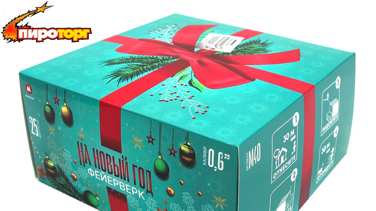 Батарея салютов "На новый год фейерверк", 25 залпов, калибр 0,6", артикул М40 (НГ)