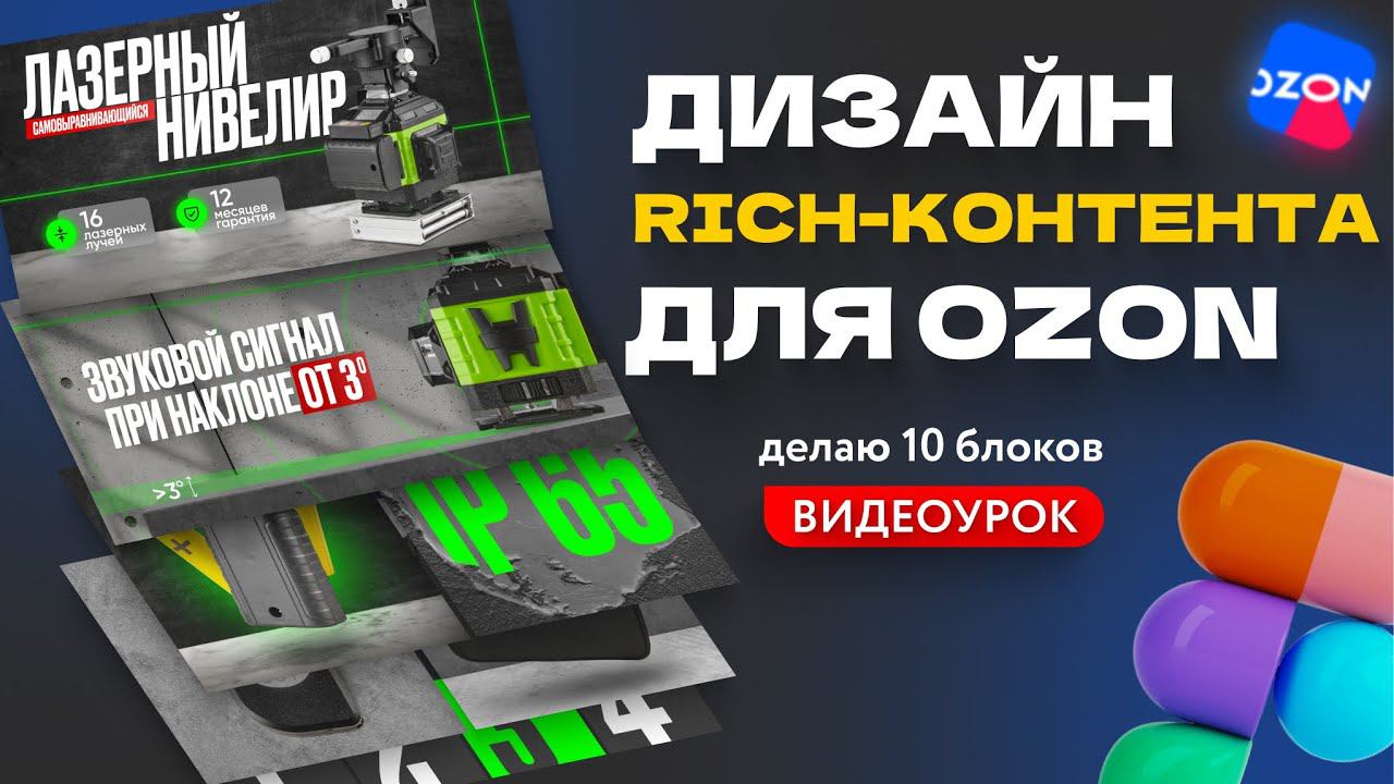 В этом видео сделал рич-контент для карточки товара на OZON. В качестве примера товара - лазерный нивелир. В начале видео разобрались с продающими особенностями оформления правильного рич-контента, а далее сделал дизайн 10 блоков (!!!). Это открытый видеоурок, поэтому вы сами можете повторяя за мной сделать рич для своего кейса или товара. Если интересно выйти на доход от 100 000 рублей в месяц на инфографике, то приглашаю на мой курс https://contentmakermp.ru/ ⚡️Это курс с оплачиваемой стажировкой в моей студии!⚡️ Материалы к уроку https://disk.yandex.ru/d/3kdwXG-_p89Qbg Шаблоны блоков для рич-контента https://www.figma.com/file/eDtwzxY49BQthUlJ0BrLxD/Rich-%D0%BA%D0%BE%D0%BD%D1%82%D0%B5%D0%BD%D1%82?type=design&node-id=0%3A1&mode=design&t=ghkVzOpgdHuijDhj-1 Подписывайся на мой канал https://www.youtube.com/@content_prodaet - бесплатные уроки и видео о контенте для маркетплейсов Канал в Telegram про профессию https://t.me/+imQZD0T2zKRjNzgy тут раскрываю стоимости наших проектов, делюсь профессиональными фишками Сайт студии для заказа контента https://qcosta.ru/ Связаться со мной в Telegram https://t.me/apulkin ______________ Вы можете повторить действия в этом ролике, используя материалы, и положить результат в свое портфолио, но я буду благодарен, если вы сделаете примечание: Данная работа была выполнена в рамках образовательного курса "Контент-мейкер для маркетплейсов" https://contentmakermp.ru/