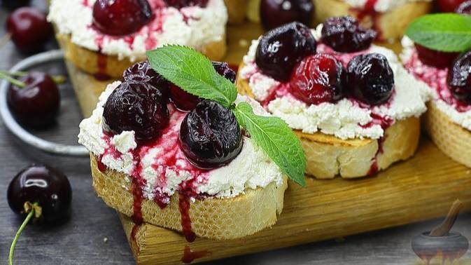 Бутерброд-десерт. ТОСТЫ С ТВОРОГОМ И КАРАМЕЛИЗИРОВАННОЙ ЧЕРЕШНЕЙ