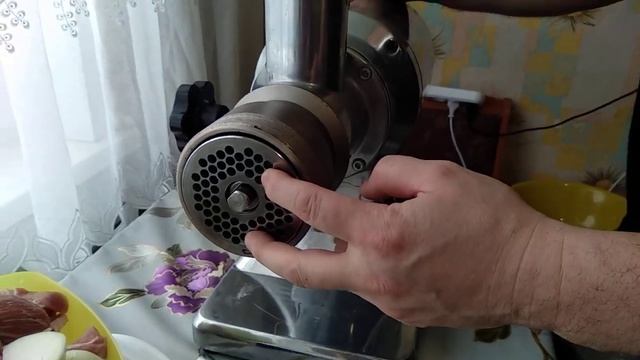Переработка мяса на промышленной мясорубке.