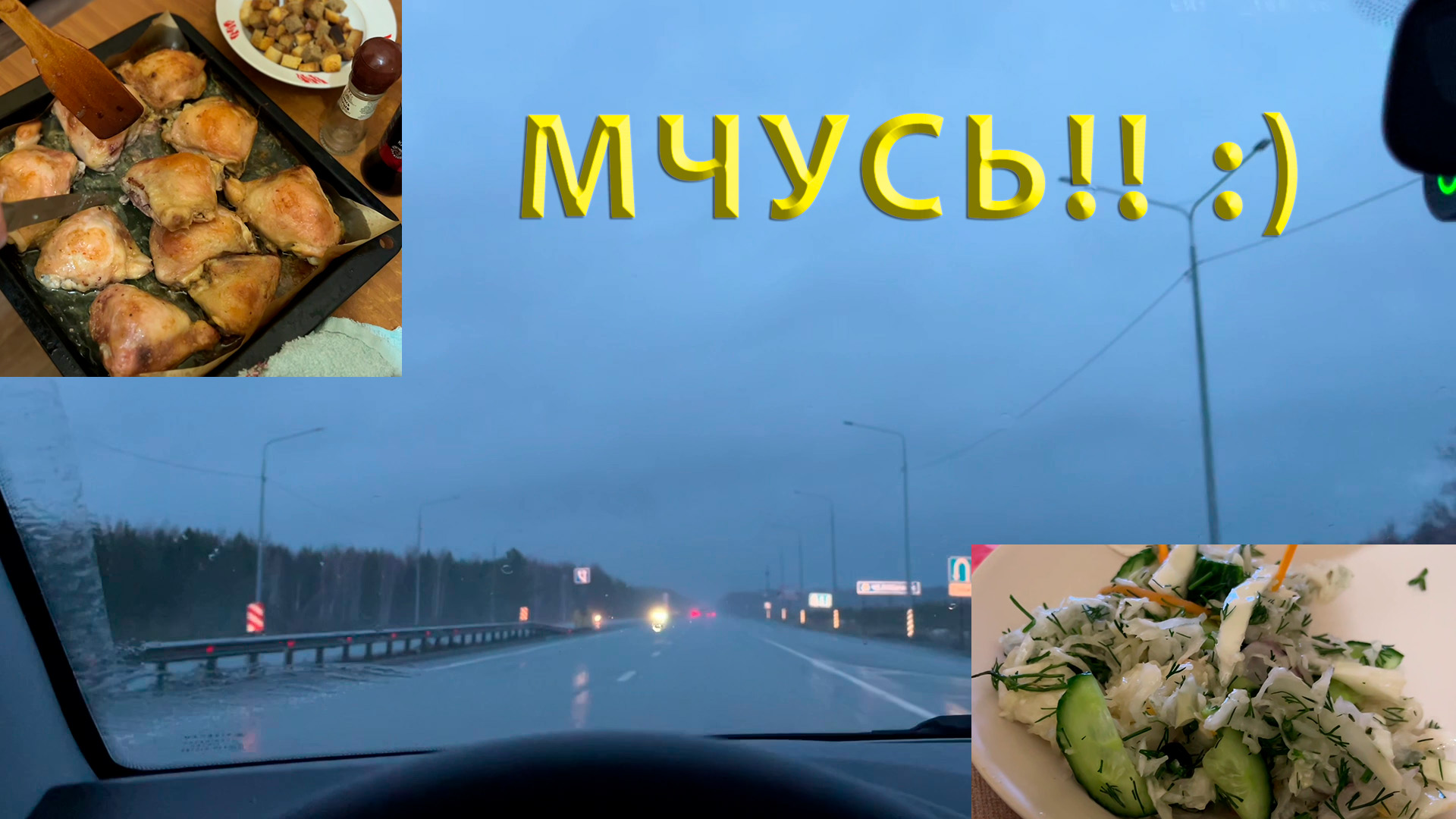 Еду к Ралине. Трасс М5 в непогоду: сочетание дождя и снега! Новый салат ?