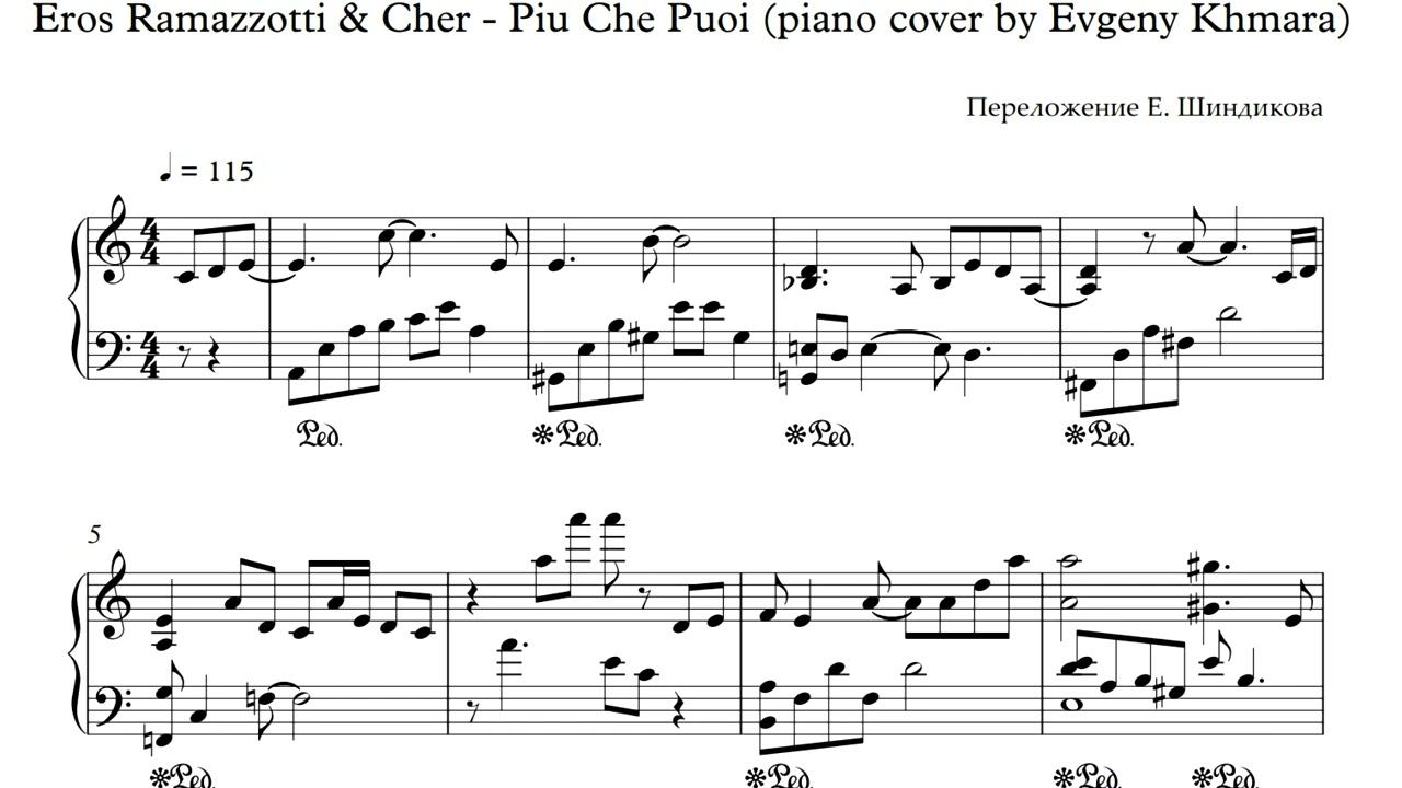 Ноты Eros Ramazzotti & Cher - Piu Che Puoi (piano cover by Evgeny Khmara)