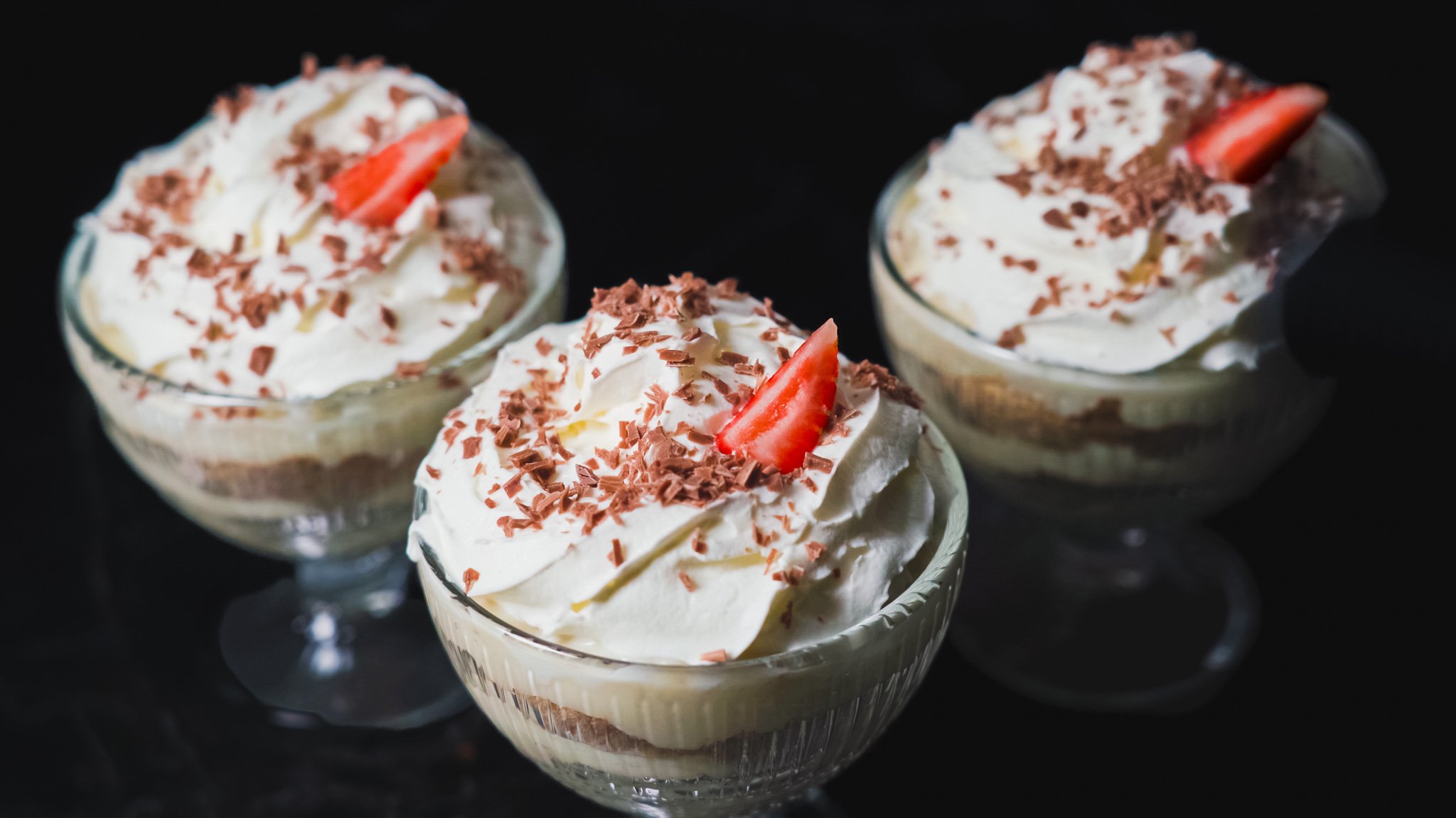 Как приготовить простой десерт за 5 минут из крема и печенья Ингредиенты: Банан 1 шт Молоко 500 г Желток 3 шт Сахар 60 г Крахмал 25 г Ванильный экстракт 1 ч.л. Печенье слоеное 100 г Темный шоколад (для посыпки)