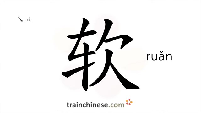软 (ruǎn) soft; flexible; mild; weak; gentle; supple; easily moved
