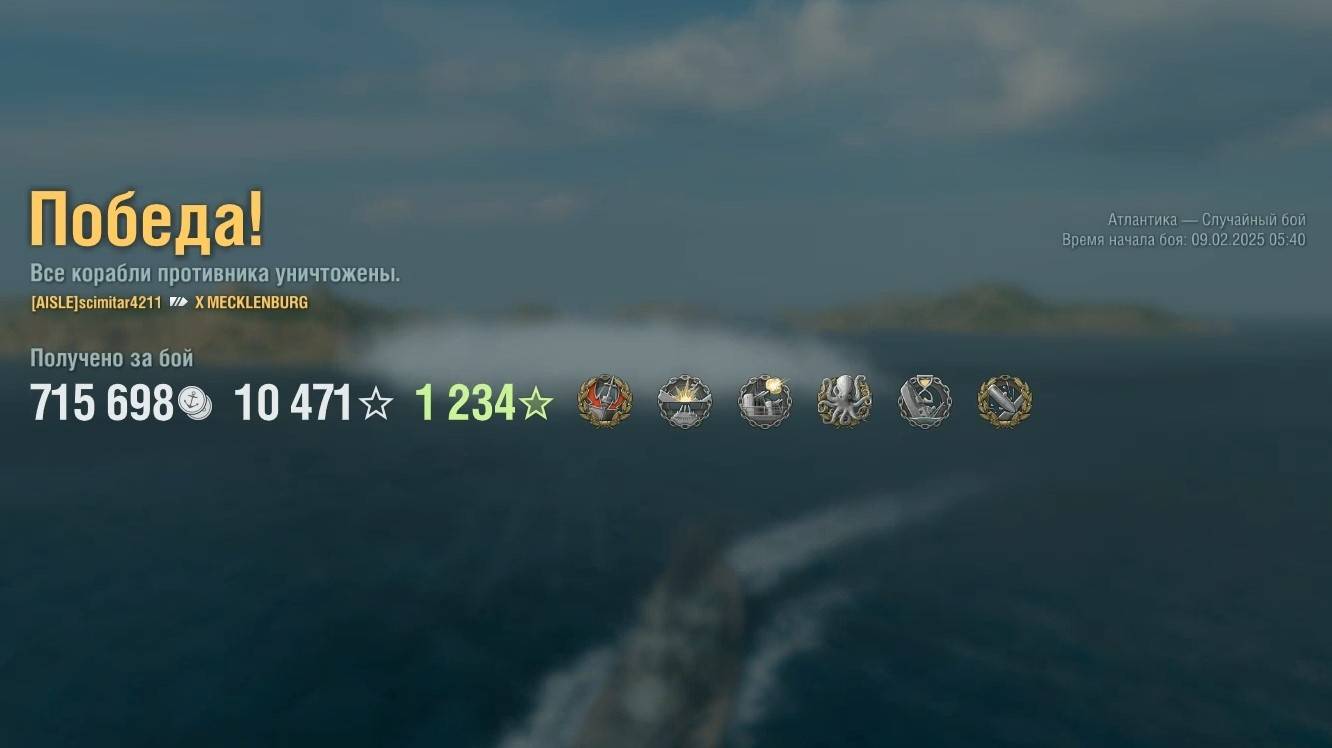 Линкор Mecklenburg. Игрок: scimitar4211 (NA). Карта: Атлантика - Случайный бой. Урон: 255к. Mecklenburg - Линкор Германии 10 уровня.