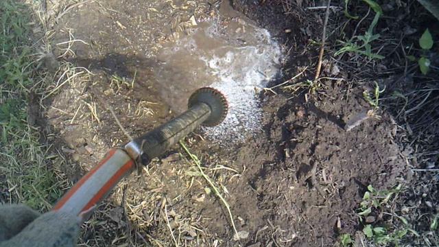 Полив свежепосеянной тыквы