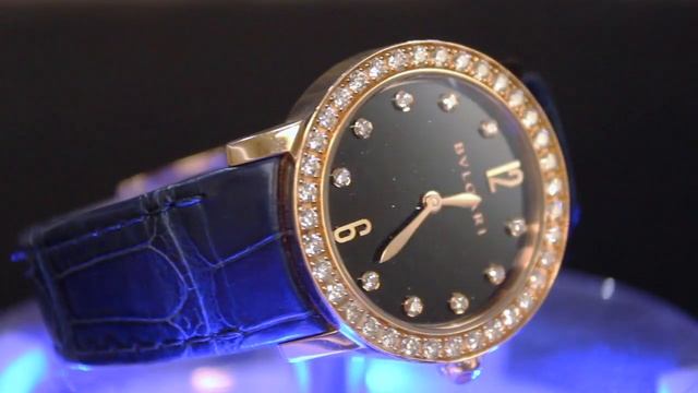 Женские часы от BVLGARI в классическом круглом корпусе из розового золота 750 пробы. Безель инкрустирован шикарными бриллиантами классической огранки, а заводная головка украшена розовым камнем огранки "кабошон". Мерцающий черный циферблат напоминает ночное звездное небо, на котором сияет 10 ярких звезд - бриллиантов, играющих роль часовых меток. 12 и 6 часов обозначены крупными арабскими цифрами. Диаметр корпуса - 33мм, циферблат защищен устойчивым к царапинам сапфировым стеклом. +38 068 830 40 40 www.kollektsioner.com