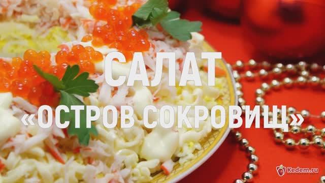 Очень нежный и вкусный праздничный салат «Остров сокровищ», с крабовым мясом и красной икрой, который очень эффектно смотрится на новогоднем столе. Еще больше рецептов смотрите на нашем сайте https://kedem.ru/recepty-s-foto/ Время приготовления: 30 минут. Ингредиенты: 200 г крабового мяса, 50 г риса, 30 г красной икры, 4 яйца, 4 ст. ложки майонеза, 2 плавленных сырка, зелень петрушки, соль по вкусу. Приготовление: 1. 4 яйца отварить вкрутую, остудить и очистить. 2. 50 г риса всыпать в сотейник, залить стаканом воды и варить до готовности, помешивая, 12-15 минут на среднем огне. 3. Готовый рис промыть и откинуть на сито, удалив всю воду. 4. 200 грамм крабового мяса натереть на крупной терке. 5. 2 плавленных сырка натереть на терке. 6. 4 отварных яйца натереть на терке. 7. Взять небольшое круглое блюдо, в середину поставить стакан. 8. Выложить отварной рис нижним слоем на блюдо. 9. Посолить и смазать майонезом. 10. Выложить слой тертых яиц. Смазать майонезом. 11. Выложить слой тертых плавленных сырков. 12. Выложить слой тертого крабового мяса. 13. Украсить майонезом. Убрать стакан. 14. Украсить красной икрой и зеленью. 15. Салат «Остров сокровищ» готов. Можно подавать к праздничному столу. Приятного аппетита! С Наступающим Новым годом и Рождеством! #кулинарныйэдем #еда #рецепты #вкусно #кулинария #рецепт #чтоприготовить #новыйгод #новогоднийстол #рождество
