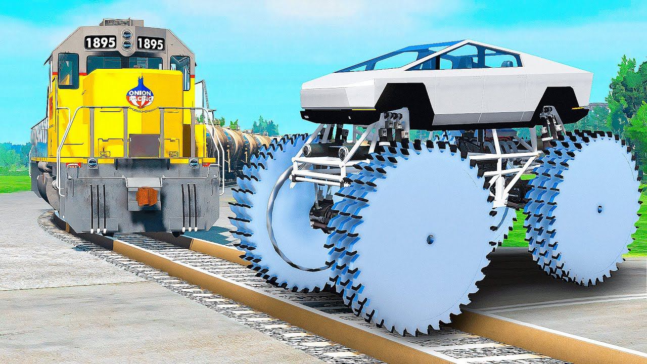 ПРОЕХАЛ РЕЛЬСЫ на ГИГАНТСКОЙ ТЕСЛА КИБЕРТРАК с ПИЛАМИ в ГТА 5 МОДЫ - ЭКСПЕРИМЕНТЫ в GTA 5 MODS