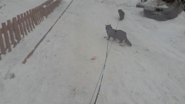 Фото гуляющего котика, зима.