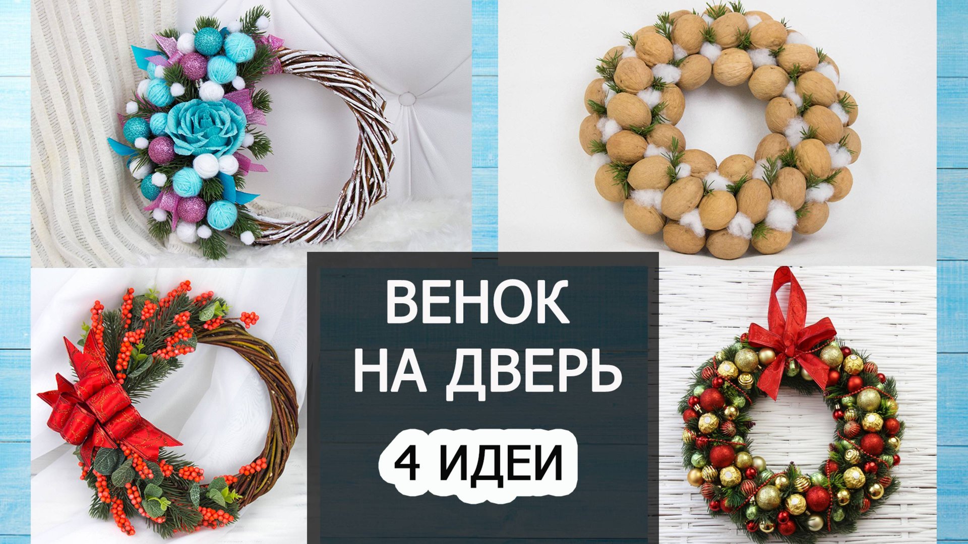 4 идеи НОВОГОДНИЙ (РОЖДЕСТВЕНСКИЙ) ВЕНОК НА ДВЕРЬ своими руками ☆ Поделки Новый Год 2020 ☆ DIY