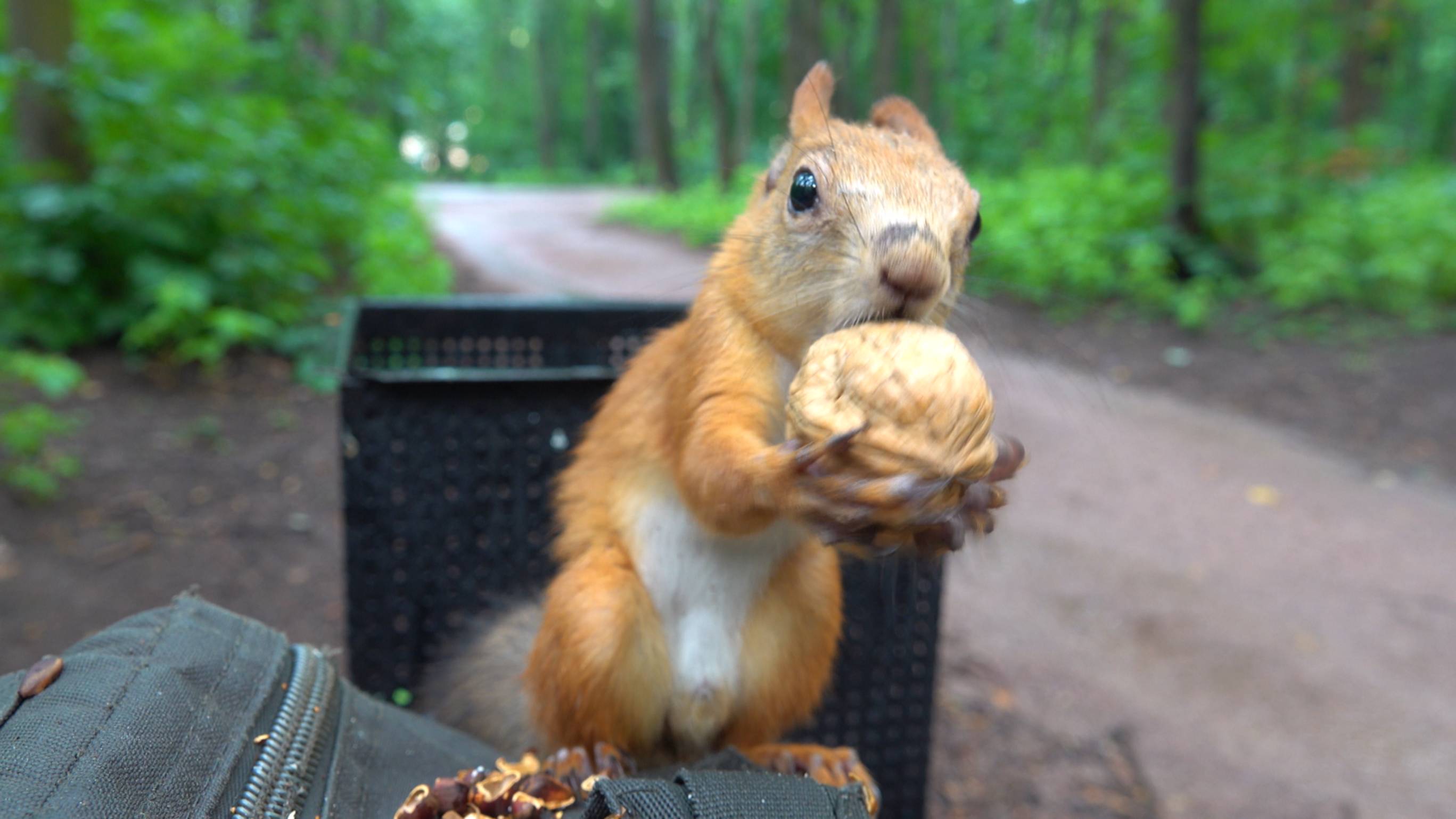 Дождь. Кормлю белок. Зарисовка