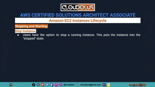 *AWS Full Course In Bangla:* https://www.youtube.com/playlist?list=PLBurDmQJIVqyKmDftrSCYMoZhpaqykJJw *AWS All Hands-On Labs:* https://www.youtube.com/playlist?list=PLBurDmQJIVqzT4xtZdJeniQVyWaSfb6r8 *AWS Compute Full Series:* https://www.youtube.com/playlist?list=PLBurDmQJIVqylCg6XBFu4F4CRMXuYoKd7 **** *Amazon EC2 Instances Lifecycle Overview | AWS Services* ? : https://youtu.be/EPfcYKzwtm8 **** 0:00 - Intro 0:23 - What Is Amazon EC2 Instances Lifecycle 1:24 - EC2 Creation & Running State 3:04 - EC2 Public and Private IP Address 3:28 - EC2 Configuration and Management 5:17 - EC2 Stopping and Starting State 5:17 - EC2 Termination State 7:45 - EC2 Amazon Machine Image (AMI) 8:36 - EC2 Account Limits, Recovery and Redundancy 10:48 - Thank You **** Here's an overview of the typical EC2 instance lifecycle: *1. Creation:* - *Launch Instance:* - EC2 instances are created by launching them using the AWS Management Console, AWS CLI, SDKs, or other methods. - Users specify parameters such as the instance type, Amazon AMI, key pair, security groups, and network settings during the launch. *2. Running:* - *Instance State:* - Once launched, the instance transitions to the "running" state. - *Public and Private IP Addresses:* - Instances are assigned public and private IP addresses, facilitating communication over the internet and within a VPC. *3. Configuration and Management:* - *Instance Configuration:* - Users can configure and manage the running instance, including installing software, setting up security configurations, and adjusting resource specifications. - *Monitoring:* - Users can monitor the instance's performance using Amazon CloudWatch and set up alarms for specific metrics. - *Scaling:* - Instances can be part of Auto Scaling groups, allowing for dynamic scaling based on demand. *4. Stopping and Starting:* - *Stop Instance:* - Users have the option to stop a running instance. This puts the instance into the "stopped" state. - Stopping an instance retains its associated resources EBS volumes, network interfaces, etc.), but it releases the public IP address. - *Start Instance:* - A stopped instance can be started again, transitioning it back to the "running" state. - Starting an instance retains its configuration, including the private & if applicable, the public IP address. *5. Termination:* - *Terminate Instance:* - Users can choose to terminate an instance when it is no longer needed. - Termination permanently deletes the instance and its associated resources, including the root EBS volume. *6. Instance Termination Notice (For Spot Instances):* - *Spot Instances:* - For Spot Instances, AWS provides a termination notice, giving applications a two-minute warning before the instance is terminated. - Applications can use this time to save state or perform any necessary cleanup tasks. *7. Data Storage Persistence:* - *Elastic Block Store (EBS):* - Data on EBS volumes attached to the instance persists even if the instance is stopped (for EBS-backed instances). - For instances terminated by the user, users can choose to retain or delete associated EBS volumes. *8. Amazon Machine Image (AMI):* - *AMI Creation:* - Users can create custom Amazon Machine Images from running instances, capturing the instance's configuration and software setup. - AMIs can be used to launch new instances with the same configuration. *9. Snapshots:* - *EBS Snapshots:* - Snapshots of EBS volumes can be created to create backups of data. - Snapshots are incremental, capturing only the changes made since the last snapshot. *10. Account Limits:* - *Instance Limits:* - AWS accounts have limits on the number of instances that can be launched in a region. Users need to be aware of and manage these limits. *11. Recovery and Redundancy:* - *High Availability:* - For high availability, users can distribute instances across multiple Availability Zones within a region. - *Recovery Strategies:* - Strategies such as creating Auto Scaling groups, using Load Balancers, and implementing redundancy contribute to the resilience of applications. ec2 lifecycle,life cycle,aws lifecycle,aws,amazon web services,cloud computing,aws ec2,aws ec2 instance creation,aws ec2 tutorial,ec2,amazon ec2,ec2 instance,AWS Services,aws cloud,aws training for beginners,ClouDolus,aws bangla,free course,free,free aws cloud,cloudolus,ec2 instance connect,Create & Launch,ssh,amazon,EC2 Configuration and Management,Amazon EC2 Instances Lifecycle Overview | AWS Services,What Is Amazon EC2 Instances Lifecycle **** *Follow Me* https://www.facebook.com/cloudolus/ | https://www.facebook.com/groups/cloudolus | https://www.linkedin.com/groups/14347089/ | https://www.instagram.com/cloudolus/ | https://twitter.com/cloudolus | https://www.pinterest.com/cloudolus/ | https://www.youtube.com/@cloudolus | https://www.tumblr.com/cloudolus | https://cloudolus.blogspot.com/ **** *THANKS FOR BEING A PART OF ClouDolus! ?✨*