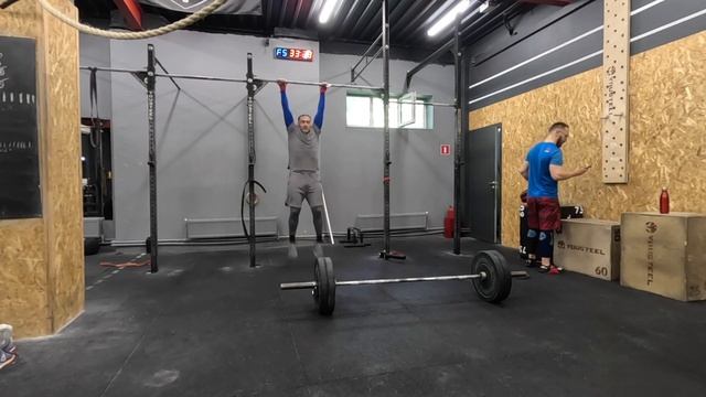 Вхожу в тренировочный режим. вторник 13 июня Рывок 10Е2МОМ 3 рывка в стойку + 3 оверхеда 50/55/60/65/71 кг Взятие + толчок 3х5х75 кг Фронтальный присед 3х5х75%(100 кг) На время 3 раунда 21 подтягивание 15 становых тяг 60 кг 9 швунгов 60 кг Время 07:06 Тренируемся каждый день 5/2 и выкладываем свои тренировки Подписывайся, если хочешь также :)