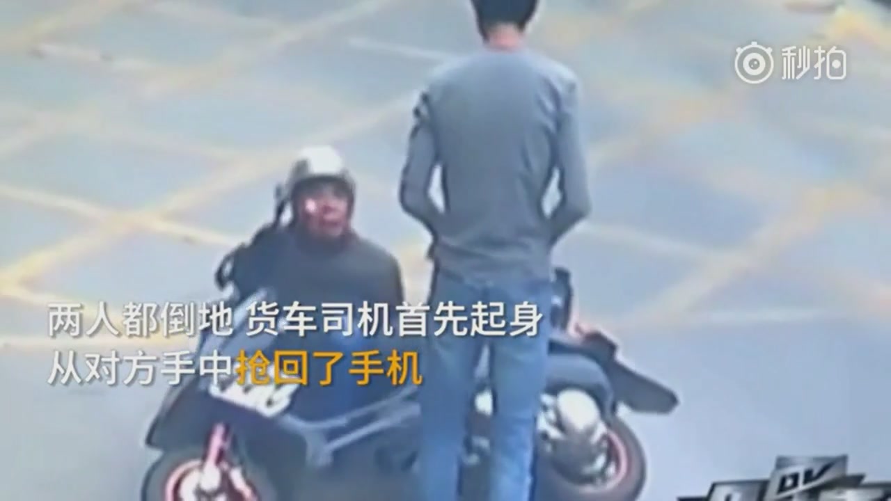 Камера наружного видеонаблюдения в городе Фошань (провинция Гуандун, Китай) сняла неудачную кражу телефона у водителя грузовика. В ролике видно, как вор крадёт телефон, оставленный водителем грузовика в салоне. После этого он садится на мопед и пытается скрыться. Неожиданно в кадре появляется ограбленный водитель, который эффектный приёмом сбивает грабителя. О последствиях инцидента не сообщается.