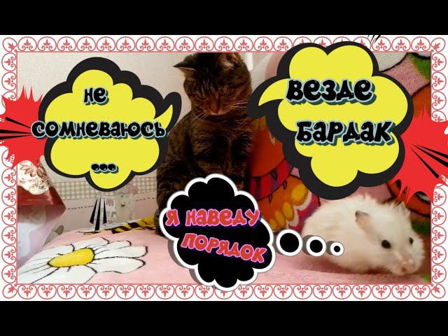 утренняя прогулка хомяка и кошки.................