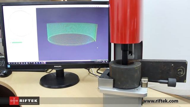 The machine is designed for contactless scanning and geometrical parameters measurement of the leaf springs holes. Upgrades of 2018: 1. New design and addition of protective cover for Machine safety exploitation. 2. Special master ring inbuilt into machine construction for machine automatic self-calibration. 3. Increased list of measured parameters: average diameter, minimal and maximal diameters, cilindricity, roundness and taper. 4. User software with added functions of working with data base which includes information about Plant and Area name, Production line, Client name, Project name, Part number and Product Order.