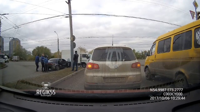 06.10.2017. Омск. ДТП. Водитель седана решил повернуть с третьего ряда движения.