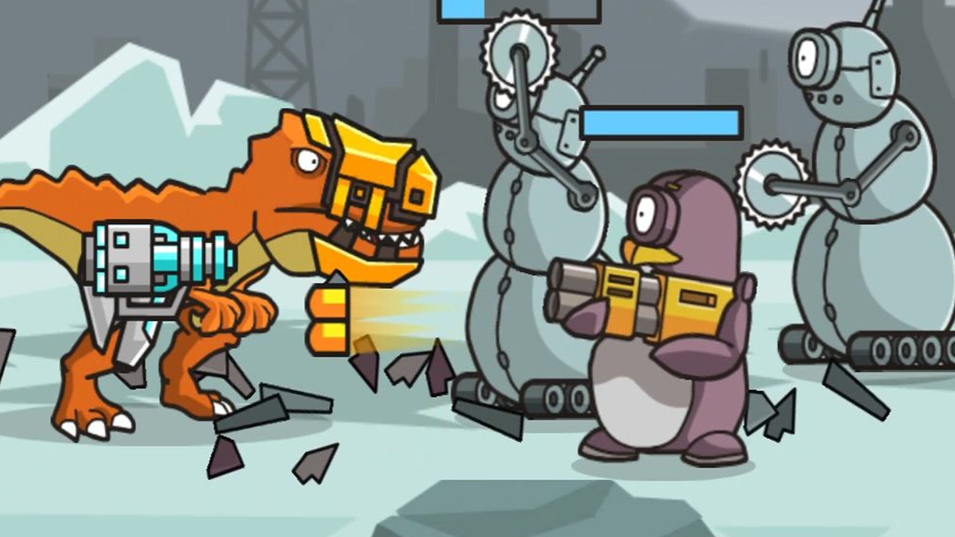 Плейлист игры - https://clck.ru/v6qmi Пришло время повеселиться с CyberDino: T-Rex vs Robots в игре с боковой прокруткой, где вы управляете кибер-динозавром, чтобы уничтожить вражеских роботов, которые соизволили забрать ваше драгоценное яйцо! Вы готовы к самым захватывающим приключениям? Пришло время выплеснуть свою ярость, безжалостно стреляя в своих противников, чтобы разнести их на куски, собирать новые элементы брони, чтобы повысить свою устойчивость к вражеским атакам, и открывать специальные уровни, пока вы не дойдете до последнего экрана. Сможете ли вы выполнить свою миссию? Удачи...