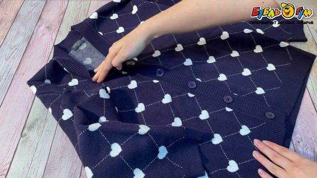 326950 Кардиган Lanson Kids с принтом ромб и белыми сердечками темно-синий