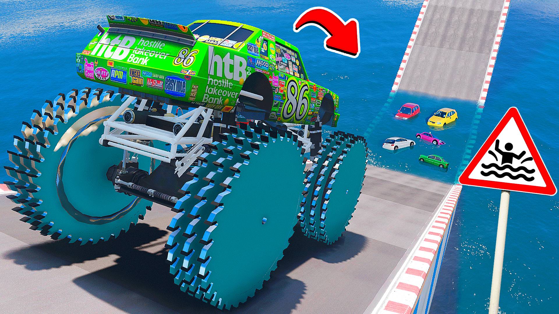 СМОЖЕТ ЛИ ГИГАНТСКИЙ ЧИКО ХИКС НА ПИЛАХ ПРОЕХАТЬ БОЛЬШУЮ ЛУЖУ В ГТА 5 МОДЫ ЭКСПЕРИМЕНТЫ в GTA 5 MODS