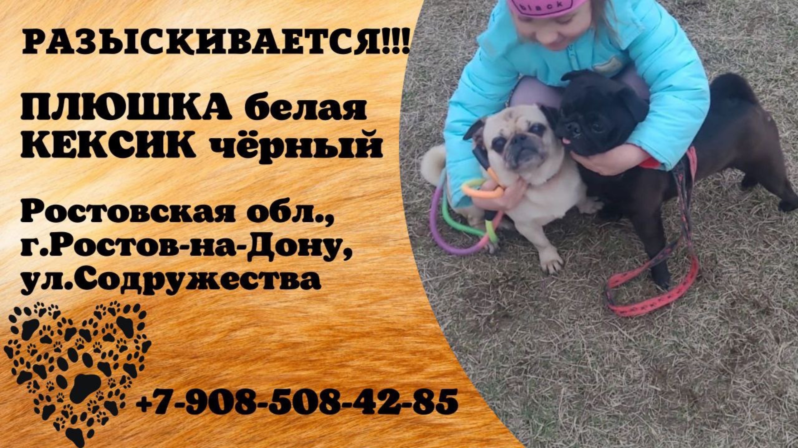 Ростовская Ростов-на-Дону Пропали собаки 14 июня Пропали мопсы, белая Плюшка отличительная черта, на поводке не пропустит ни одной собаки, что, бы не облаить. Есть полосной шрам на пузе, стерелизована, большой шрам от сустава до голени на задней левой лапе, шрам от удаления онко. Черный Кексик, добрый мальчуган, любит всех облизывать, прямо потологически, даже тогда когда нельзя, у него длинноват язык и чуть неправильной формы, ходит с торчащим кончиком языка Имя хозяина: Светлана Телефон: 79085084285 Инфо: https://vk.com/wall-198815410_202010 #пропали_собаки#ростовская #ростов_на_дону