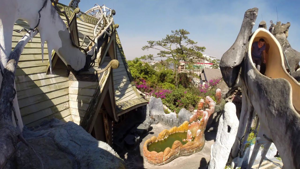 В 5 утра мы отправились в Далат (Da Lat). Этот город считается во Вьетнаме городом-курортом вечной весны, как в альпах. Хвойные леса и прохладные водоёмы – это то, что не хватало французским колонизаторам в конце 18 в. Ну и вина! Здесь оно есть, благодаря им. Сложно сравнить это место с альпами, потому как не посещал их весной (надеюсь, пока), но место действительно зелёное с постоянной, как утверждают, температурой +20-25. Ехать до него по горным серпантинам оказалось почти 4 часа. И одну из дорог ведущих туда по карте гугла я так и не нашёл. Быть может, поэтому она и была достаточно разбитой. В путешествие по Далату (он находится на высоте 1800 м над уровнем моря) мы отправились с одной из многочисленных частных фирм. Цена на некоторые туры здесь была в 2 и более раз ниже, чем и официального представителя. Да, часть риска мы этим берём на себя, но блин, отчего же такая разница? Вероятно, частично это может быть объяснено тем, что крупные фирмы обязаны работать легально с оплатой всех налогов. А это как минимум 15% надбавка к цене и свой интерес. Но, к примеру, Далат обошёлся за 30 долларов вместо 55 за человека, а были ещё и 2х дневные путешествия в Ньячанг по цене 250 баксов официальный тариф и 100$ у частников. В общем, решать вам. Эксцентричным очарованием сего места является отель Крейзи хаус (crazy house). Этот "сумасшедший дом", построила одна из модернистских дизайнеров, получившая образование архитектора в России. По сути это отель, каждый номер которого представляет собой оригинально выполненные мини-хоромы. И лестницы между всеми этими номерами как-бы вывернуты наружу. Невольно всё напомнило микс Гауди и Дали. Впечатляло то, что номер можно снять всего лишь за 70 долларов в сутки. Информация с сайта http://www.vsetravel.ru/tour/516/8#ixzz6ttP2l1VD